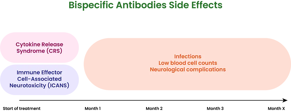 What are the side effects of bispecific antibody therapy? When can I expect to experience these side effects?