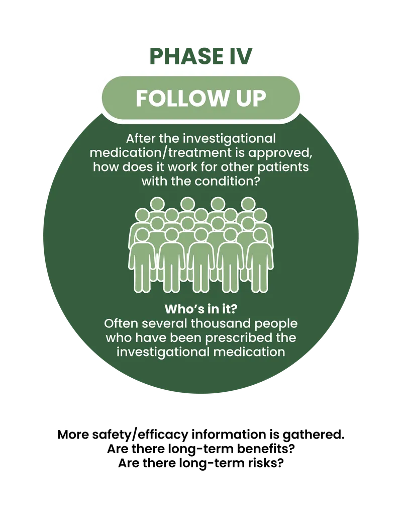 After regulatory approval, Phase IV trials (post-marketing studies) monitor the treatment’s long-term safety and effectiveness in a broader, real-world patient population.