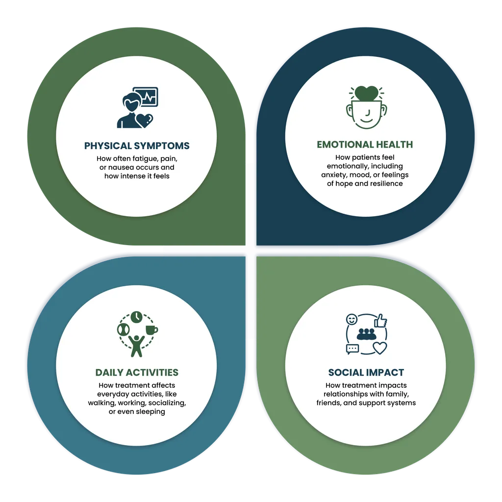 Quality of life assessments look at various aspects of a patient's experience during and after treatment, such as: