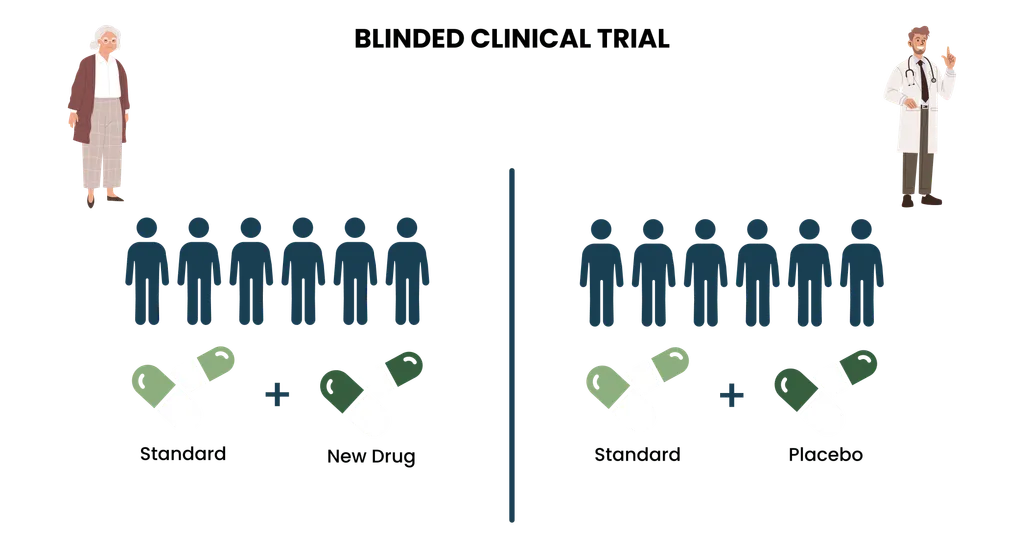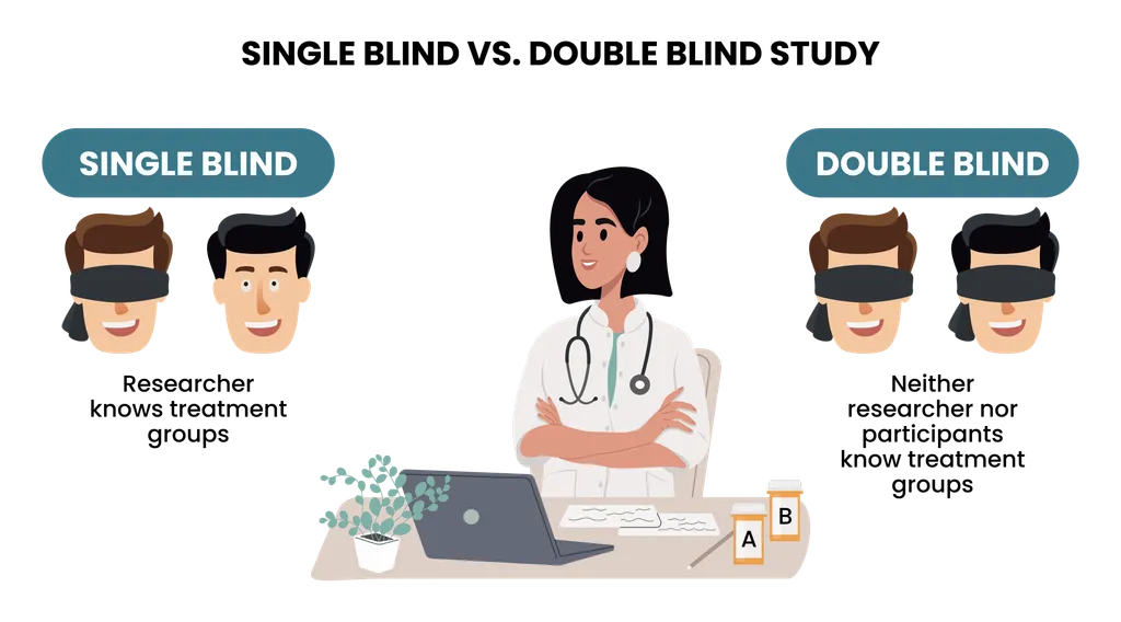In blinded studies, patients don’t know their group; in double-blinded studies, neither patients nor researchers know. This helps prevent bias in the treatment administration or data collection.