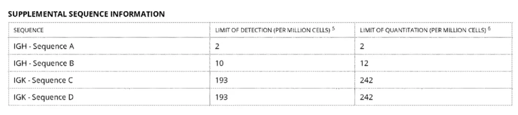 Here’s a real patient test that’s been anonymized based on a clonoSEQ® test for MRD:
