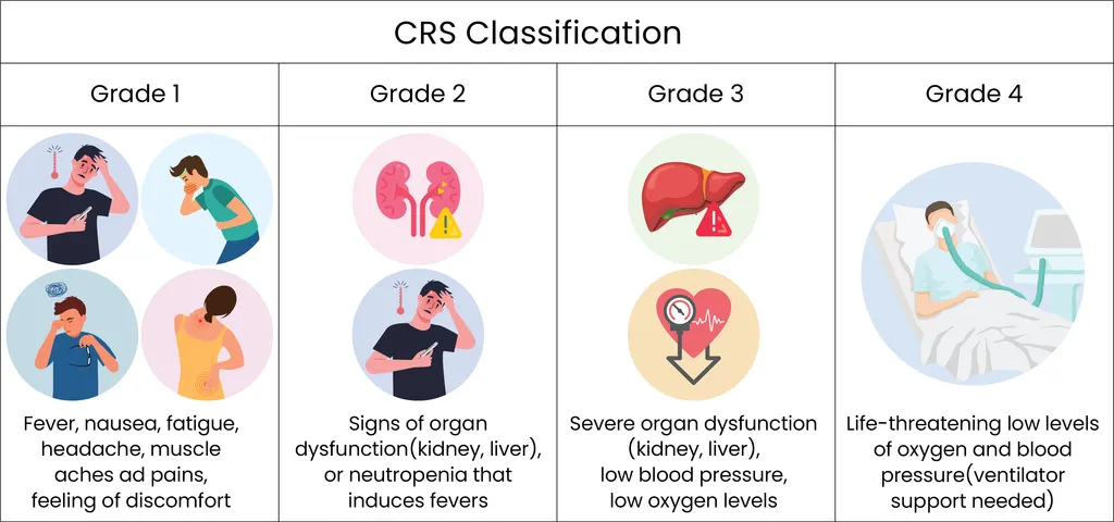This is a moderate reaction. It may include early signs of organ problems, like the kidneys or liver not working well, or low white blood cell counts that cause fevers. Your care team may give you steroids, oxygen, or fluids through an IV. A medicine called tocilizumab is often used at this stage to control CRS and prevent it from becoming more severe.