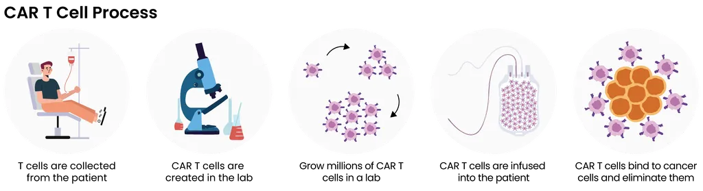 CAR T-cell therapies are tailored to each person by collecting their own T cells and modifying them in a lab. This process equips the T cells with chimeric antigen receptors (CARs) on their surface. These CARs are designed to detect and attach to specific proteins, known as antigens, on the surface of cancer cells.