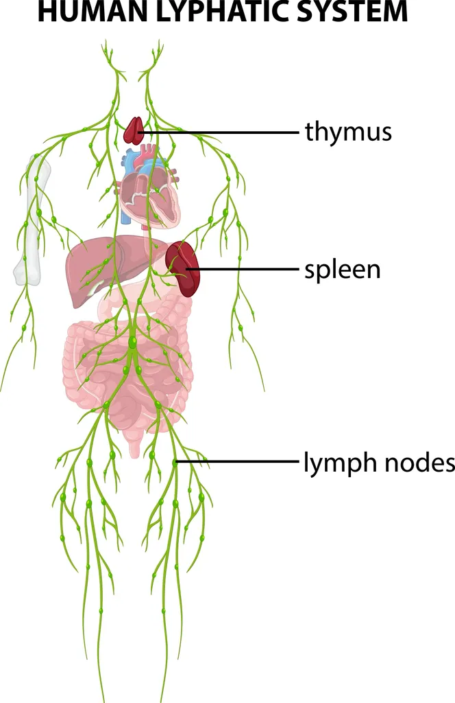 - Lymphatic system: The network of organs (including the spleen) that helps get rid of toxins and protect the body from infections.