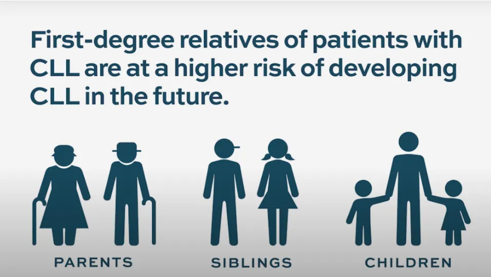 Dr. Scarfò mentioned that first-degree relatives, such as parents, siblings or children, of patients diagnosed with CLL have a higher risk of developing CLL in the future. However, it’s important to consider that CLL is a rare disease. Even for those with a higher genetic risk, the chances of developing CLL are slim.
