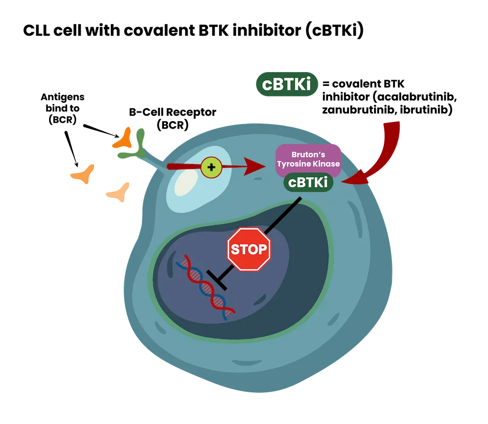 Covalent BTK inhibitors bind permanently to the BTK protein, effectively stopping its activity. However, long-term use can lead to mutations in the BTK protein, causing CLL cells to become resistant to treatment.