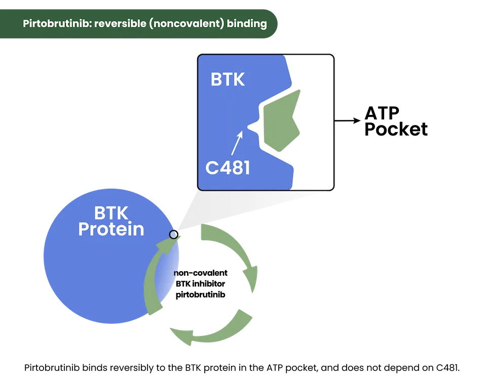 Non-covalent BTK inhibitors temporarily bind to the BTK protein using hydrogen and ionic bonds. This binding method allows them to inhibit BTK activity even in the presence of mutations that may have developed after using covalent BTK inhibitors.