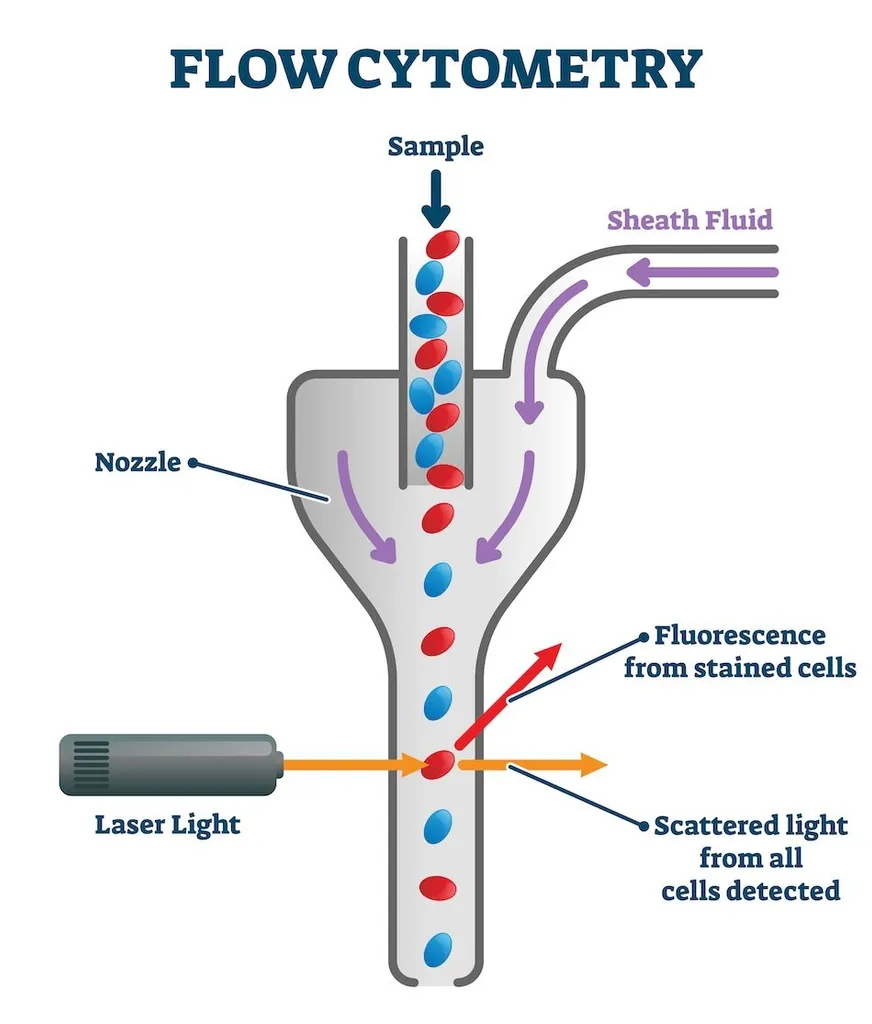 - Lab process: Cells are tagged with dyes, passed through the flow cytometer, and analyzed by computer.