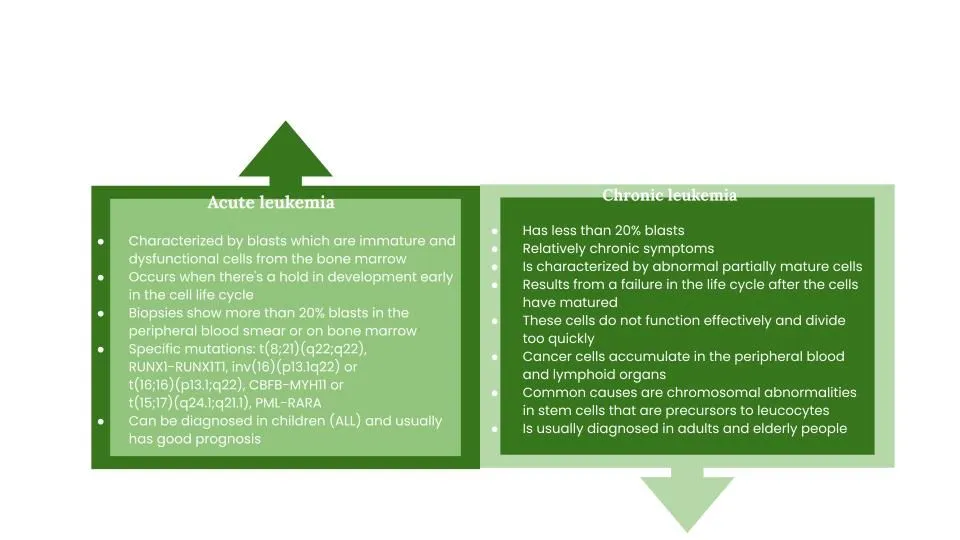 Acute leukemia occurs when cell development stops early in the cell’s life cycle, making the cells immature and unpredictable. In acute myeloid leukemia, relapse is common. However, there is a lower chance of leukemia cells returning after chemotherapy in acute lymphocytic leukemia.