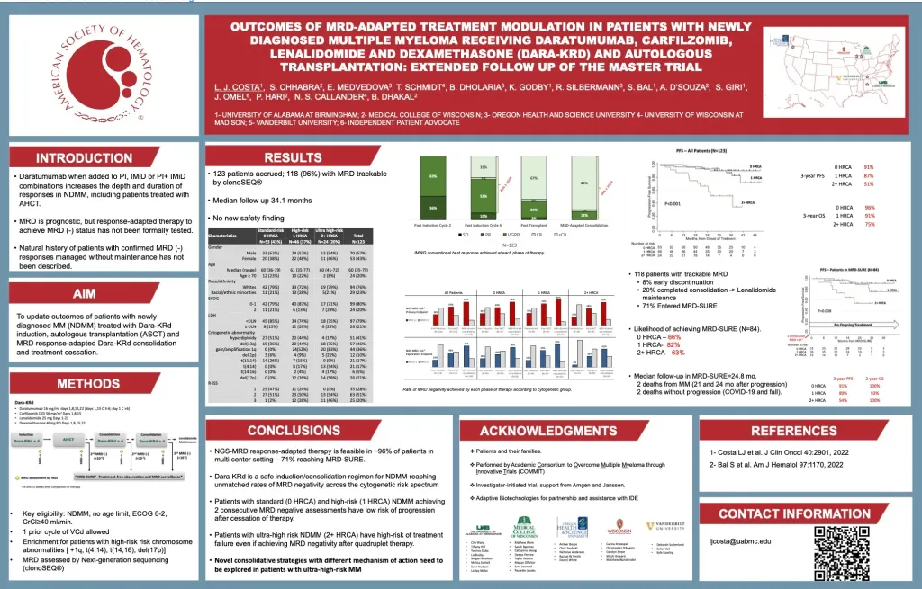 At the ASH meeting, Dr. Luciano Costa presented Abstract 3237 which provides extended follow-up from the Master Trial. Let me get right to the authors’ bold conclusion for newly diagnosed multiple myeloma (NDMM) patients,