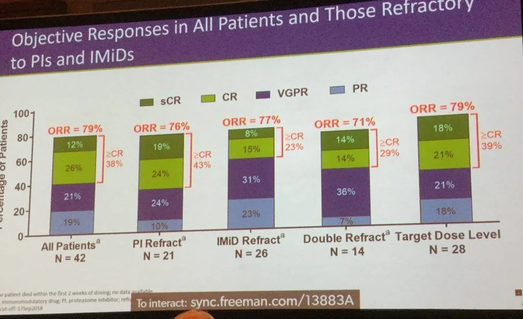 The overall response rate of 79% is remarkable, and is exceptional for patients who have relapsed after taking a proteasome inhibitor, immunomodulator or both.