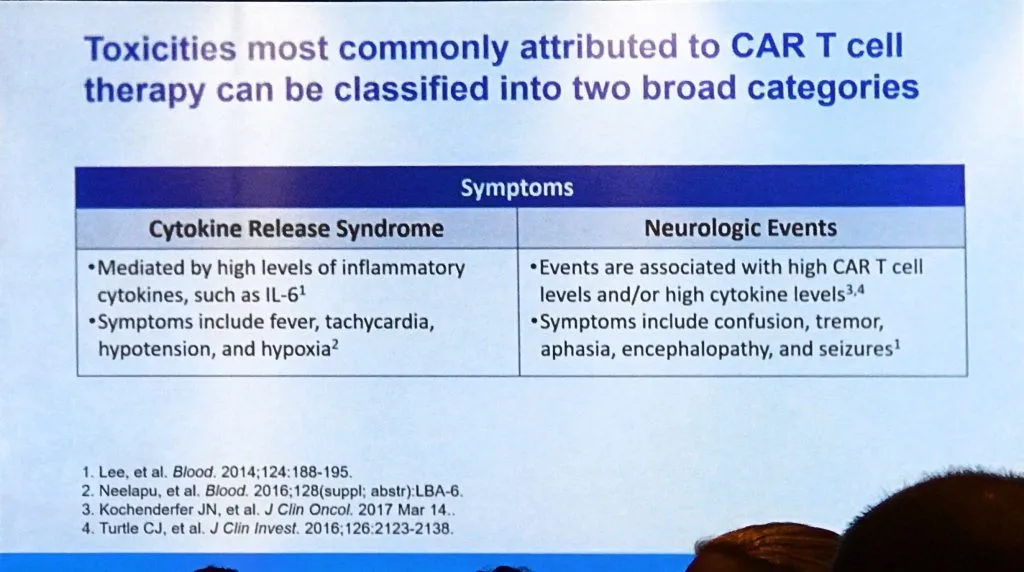 Some toxicities are attributed to CAR T-cell therapy in myeloma. These include Cytokine Release Syndrome and Neurologic Events, and the patient needs to be monitored carefully medically.