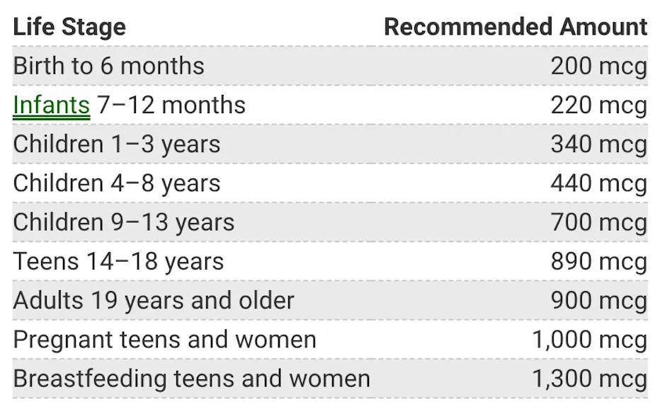 Daily copper recommendation in micrograms (mcg):
