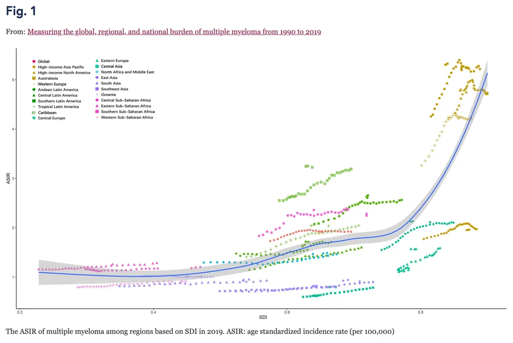 “Globally, incident and death MM cases have more than doubled over the past 30 years. The increasing global burden may continue with population aging, whereas mortality may continue to decrease with the progression of medical technology. The global burden pattern of MM was diverse, therefore specific local strategies based on different burden patterns for MM are necessary.”