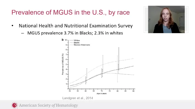 We also know that MGUS is precursor condition for all myeloma patients and find a similarly high occurrence for MGUS in black patients in addition to multiple myeloma.