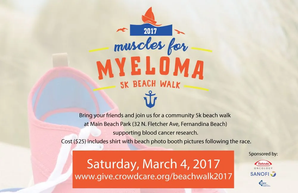 Myeloma Crowd has a Beach Walk on March 4th, 2017 to raise funds for two immunotherapy myeloma research projects which have great potential but do not fit into the normal model for new drug development. I am not saying this is in any way an indictment of drug companies, because I and most people know that because of companies like Celgene and Takeda (Revlimid and Velcade), the life expectancy of myeloma patients seeing a myeloma specialist has gone from 3 years to now close to 10 years. In addition, both of these companies have shown compassion and local support to the patients and IMF support groups. Daratumamab could add another 3 to 5 years on top of that and we hope to see more leaps forward.