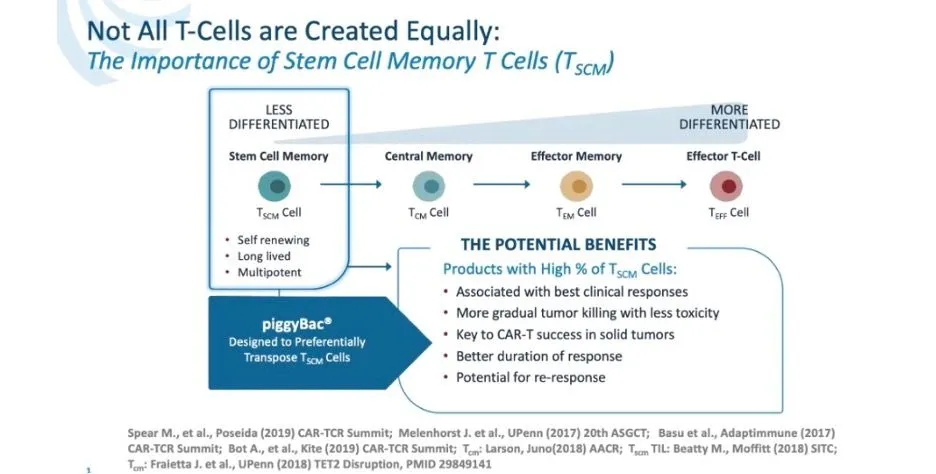 - P-BCMA-101 targets BCMA and has a high percentage of desirable stem cell memory T cells